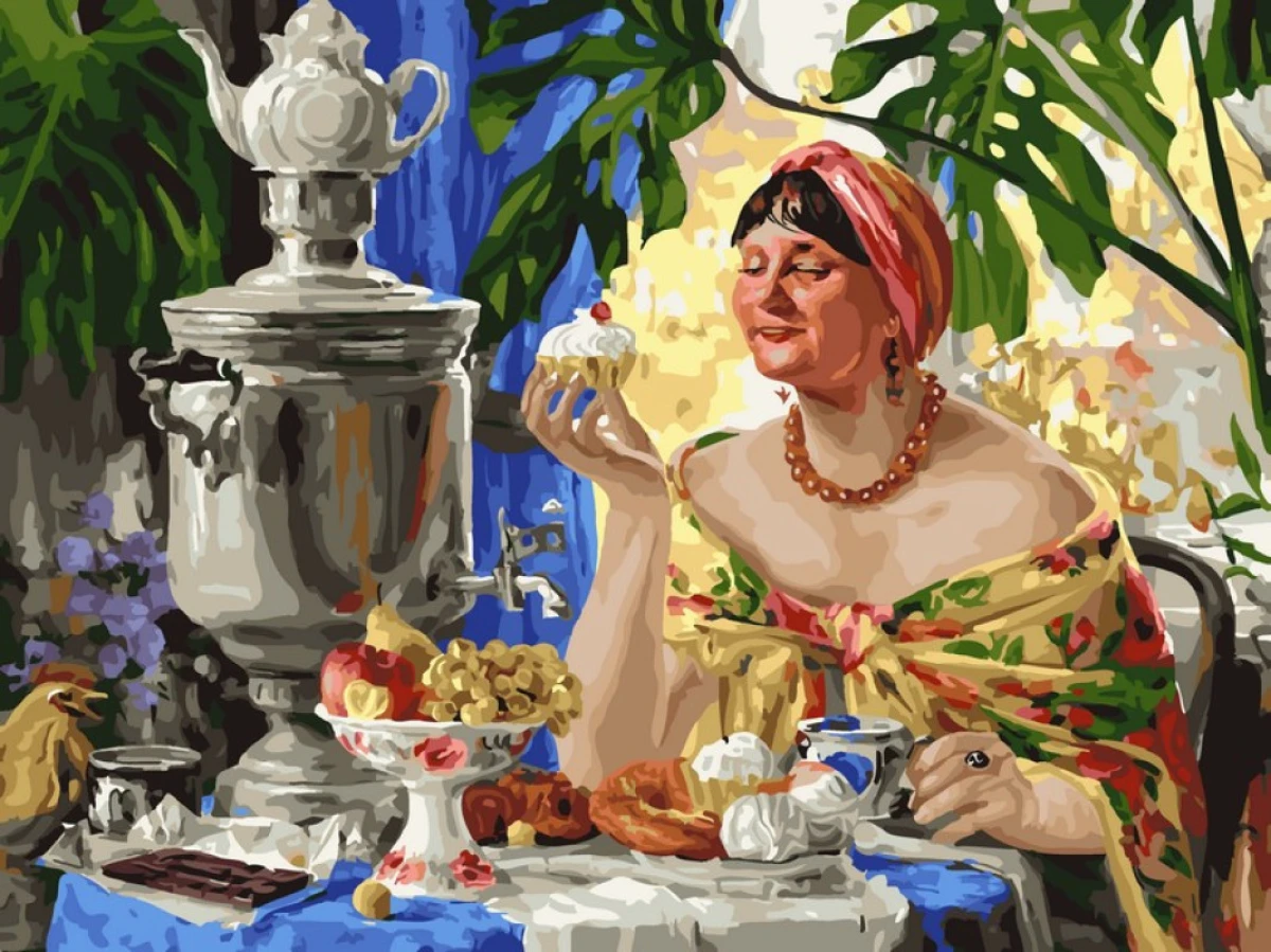 Дикая вишня / Картина по номерам «По мотивам Б.Кустодиева. Чаепитие у самовара»