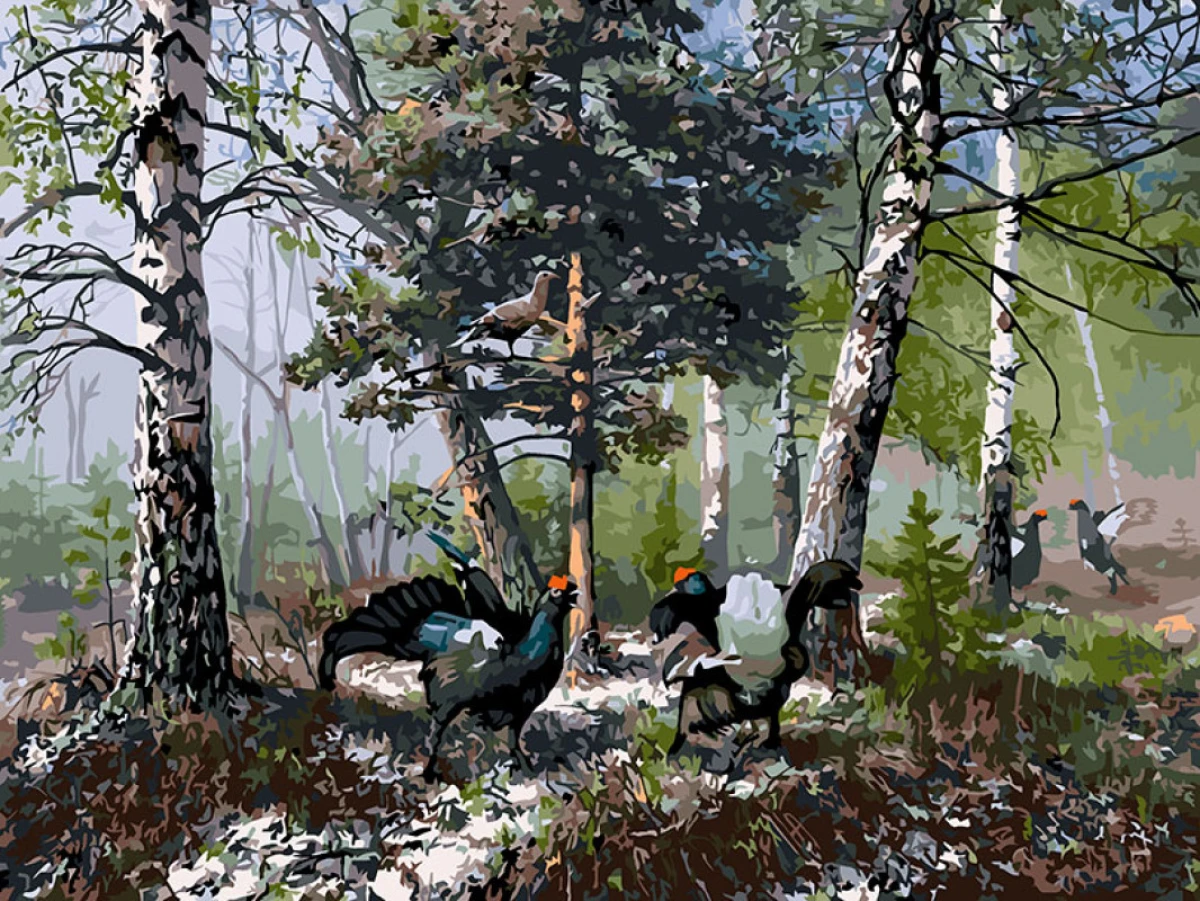 Дикая вишня / Картина по номерам «Глухари на токовище»
