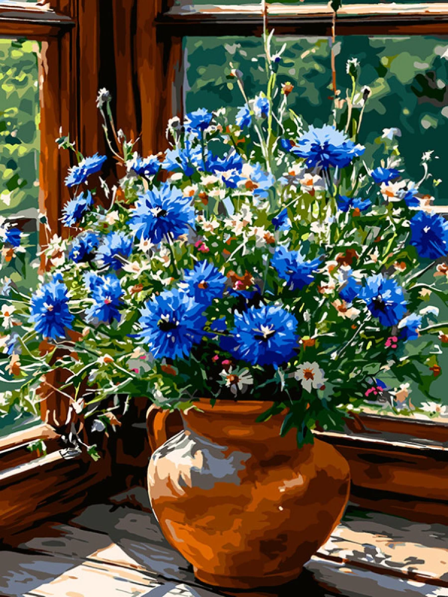 Дикая вишня / Картина по номерам «Букет с полевыми васильками»