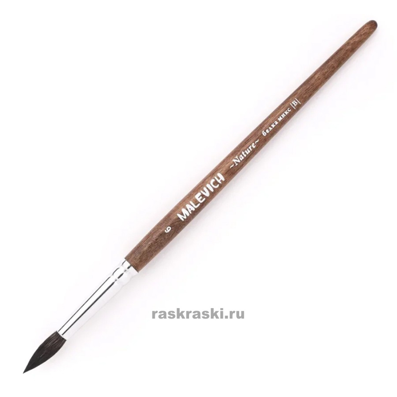 Серия кистей "Nature" от Малевичъ это - микс высококачественного ворса из хвоста сибирской белки и мягкой синтетики. За счет сочетания этих материалов кисть становится более управляемой и долговечной, чем кисти из 100% беличьего волоса. У кистей данной серии - латунная обойма с антикоррозийным покрытием и двойным обжимом. Березовая ручка покрыта коричневой морилкой и матовым лаком. Произведено в России.