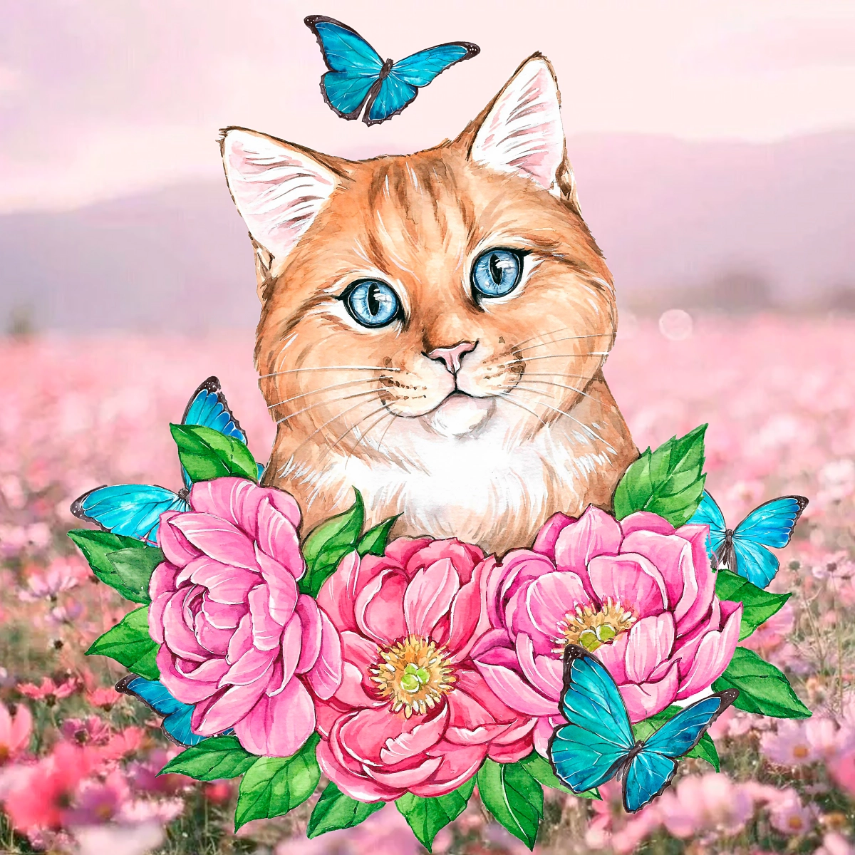 Мозаика Алмазное Хобби «Кисуля с бабочками»