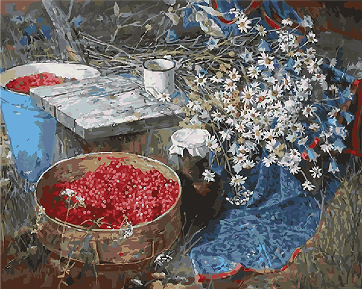 Все необходимые цвета красок есть в комплекте. Холст размечен контурами с номерами красок. Просто закрашивайте участки красками с соответствующим номером.