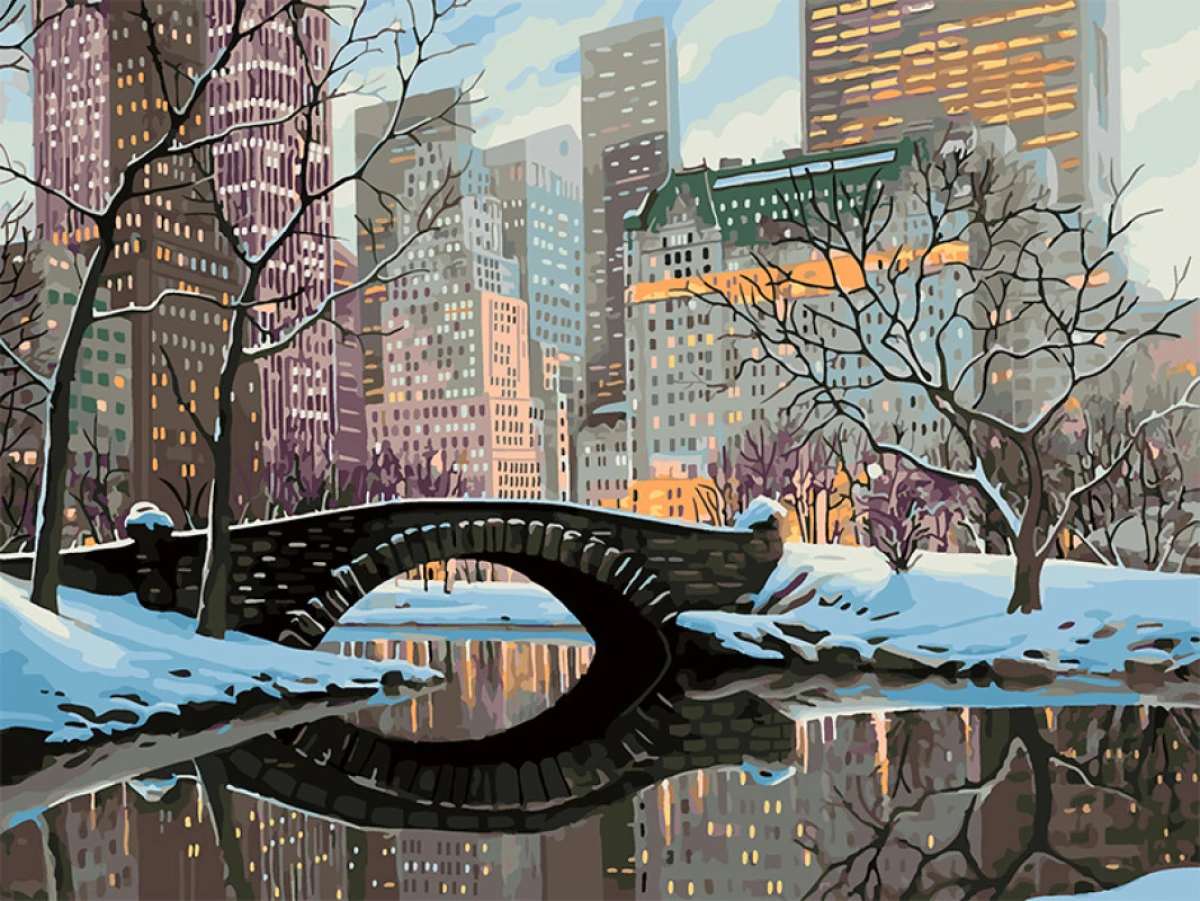 Дикая вишня / Картина по номерам «Зимний город»