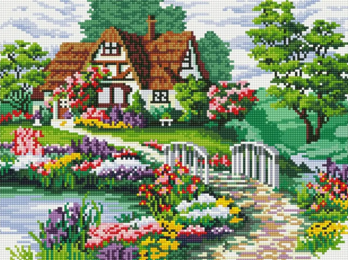 Алмазная вышивка Белоснежка «Мостик в цветах»