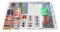 Перед началом работы нужно подготовить стилус: снять защитную пленку с наконечника и окунуть его в специальный клей (или использовать воск, который идет в комплекте). Это нужно для того, чтобы стилус мог легко захватывать стразы. Затем насыпьте небольшое количество страз нужного цвета в лоток и слегка потрясите его — кристаллы лягут ровно, гранью вверх, и их будет удобно брать стилусом.