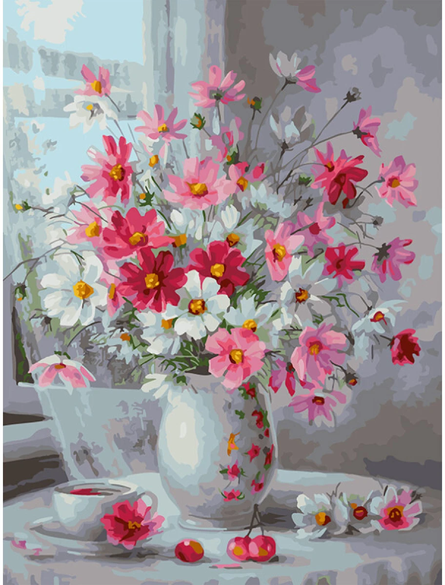 Дикая вишня / Картина по номерам «Космеи на столе»