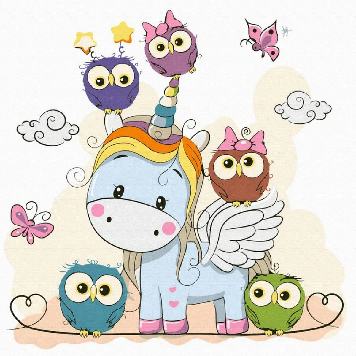 Molly / Картина по номерам «Единорожек с совятами»