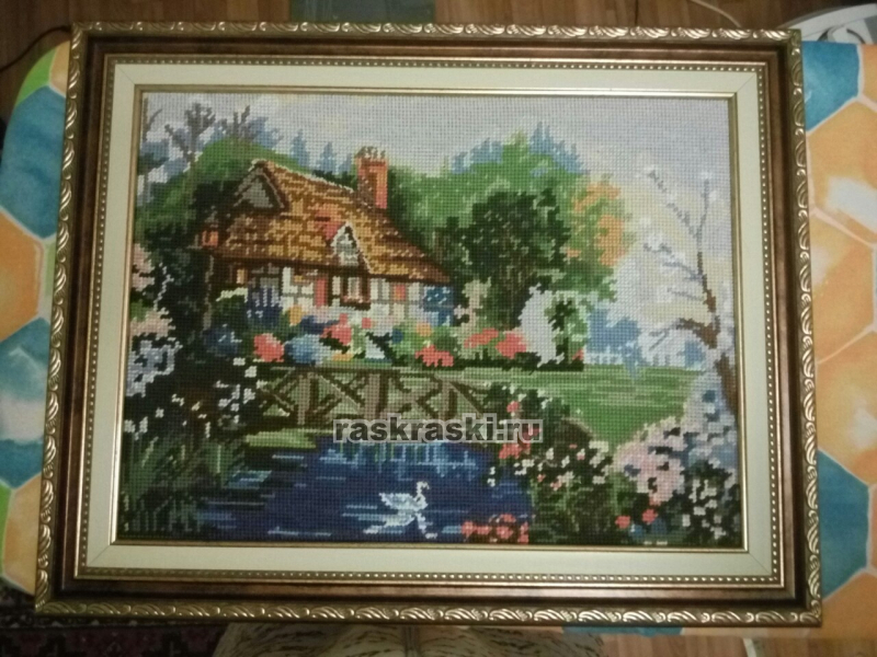 Зафиксировать картину в рамке можно при помощи двустороннего скотча или клея. Крепление для подвешивания рамки в комплекте.
