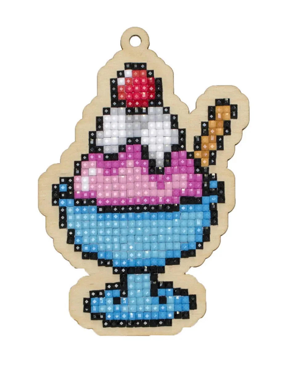 Деревянная основа, клеевая основа с защитным слоем, инструкция, акриловые камни-стразы, стилус (сухой гель)/пинцет, блюдце, магнит, веревочка.